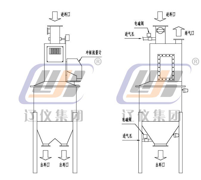 4、本系統(tǒng)為防止物料長時(shí)間沉積造成堵塞,在上、下出料口設(shè)有氣體松動(dòng)裝置,定期松動(dòng)。