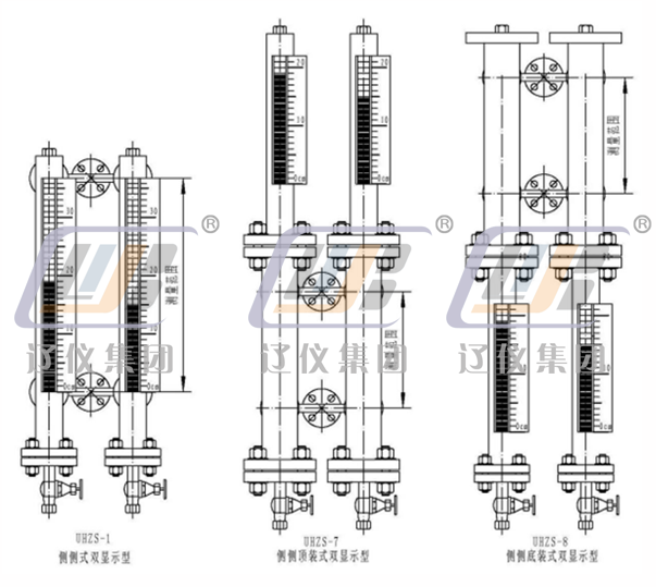 UHZS系列雙顯示型磁浮子液位計是液位計利用連通器原理,用兩套各自獨立的測量管組合而成??梢酝瑫r清楚地顯示出兩種介質(zhì)的界位和上部其中小密度介質(zhì)的液位。適用于容器中有兩種液體介質(zhì),且需同時測量兩種介質(zhì)的界位和其中小密度介質(zhì)的液位的場合。如液化氣-水、油-水等。如在該儀表上配套安裝液位報警開關和遠傳變送器可實現(xiàn)遠距離控制、自動檢測和記錄。