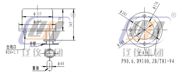 UL-3型物位開關(guān)采用擺復(fù)式傳動系統(tǒng)。擺動軸的軸端對稱掛有重錘及配重砣。無物料時,重錘失重,彈簧拉力克服了配重砣的重力使軸靜止,電機(jī)使測量撥叉張開動作,微動開關(guān)動作,發(fā)出料面信號;若物料夾住重錘下行,亦可使拔叉張開動作,發(fā)出料面信號,同時限位座靠在底板上,限制重錘繼續(xù)下行,使儀表內(nèi)部免受沖擊及拉力,切斷電機(jī)電源。